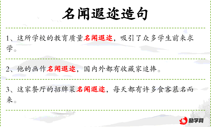 句子中“名闻遐迩”是一个成语,源自传统文化,强调名声的广泛传播。这反映了人对教育质量的重视。