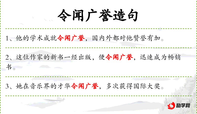 - 令闻广誉:动词短语,意为“使得名声广泛传播”。