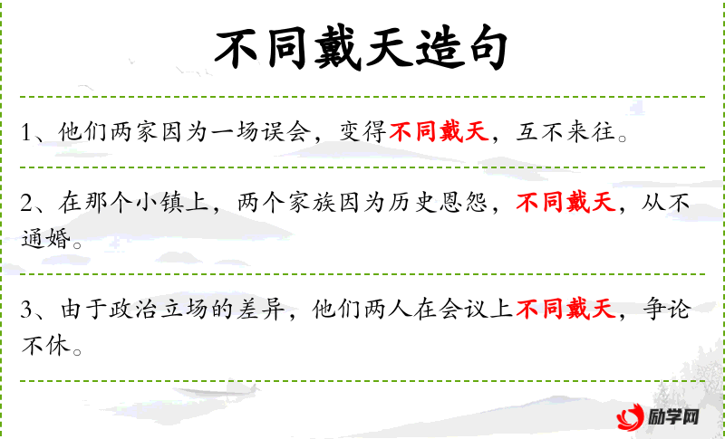句子:“他们两家因为一场误会,变得不同戴天,互不来往。”