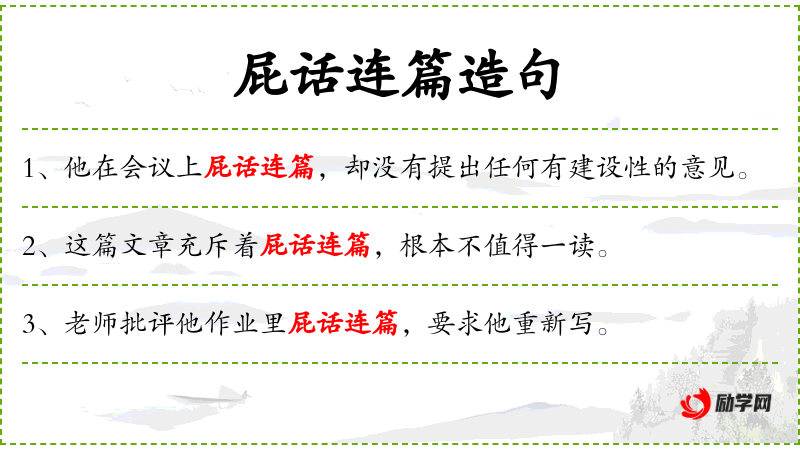 - 屁话连篇:形容说话很多但内容空洞、无实质意义。