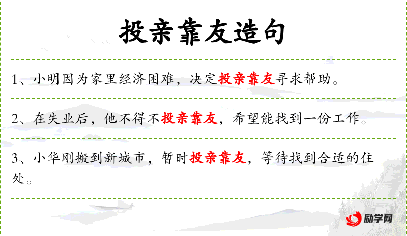 - 投亲靠友:去亲戚和朋友那里寻求帮助或居住。