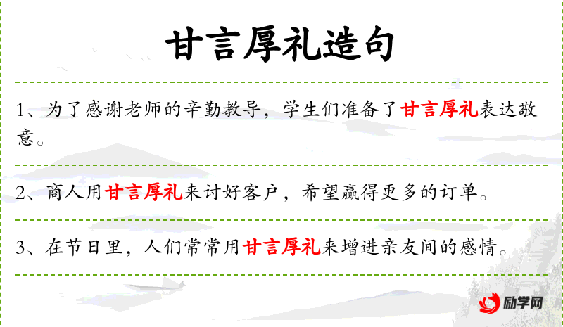 4. 【甘言厚礼】 - 甜美的言辞,厚重的礼品。