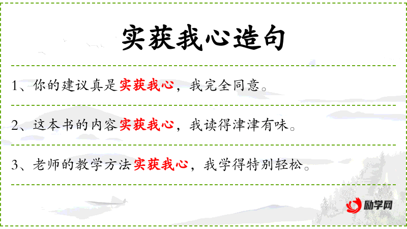 1. 【实获我心】 表示别人说得跟自己的想法一样。