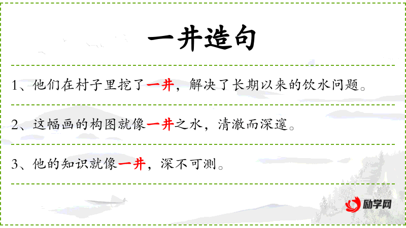 古代井田制的一种单位。以九百亩为一井; 一口水井;一眼泉水; 一个市井;一座市镇。