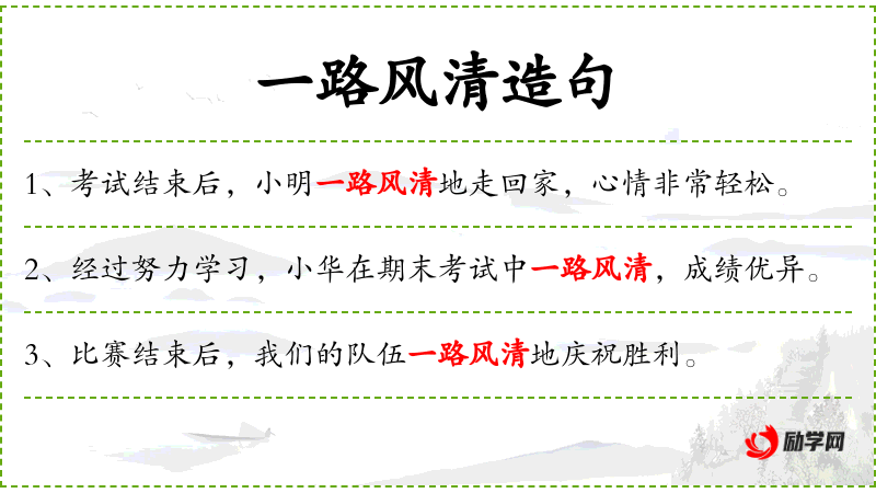1. 【一路风清】 - 形容安定升平的景象。