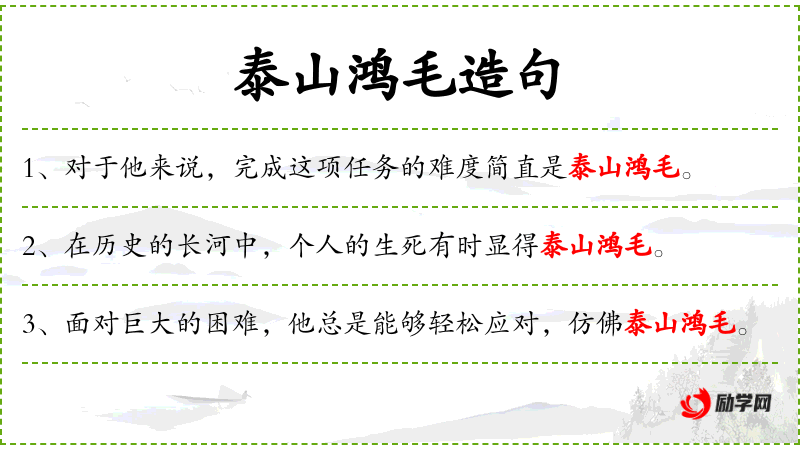 1. 【泰山鸿毛】 - 比喻轻重相差极大。