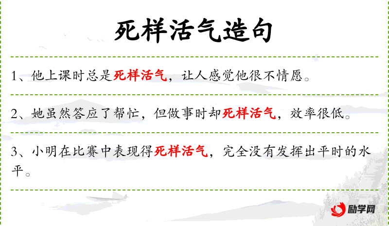 1. 【死样活气】 - 不死不活,没有生气。