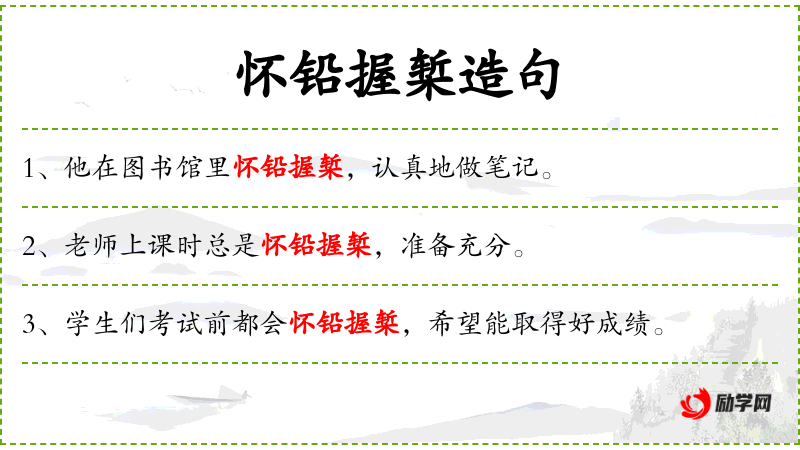 句子:“老师上课时总是怀铅握椠,准备充分。”