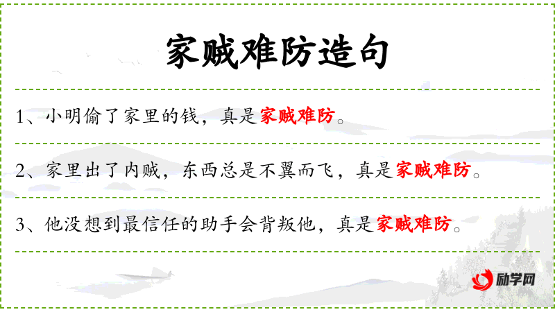 - “家里的钱被小明偷了,这真是家贼难防。”