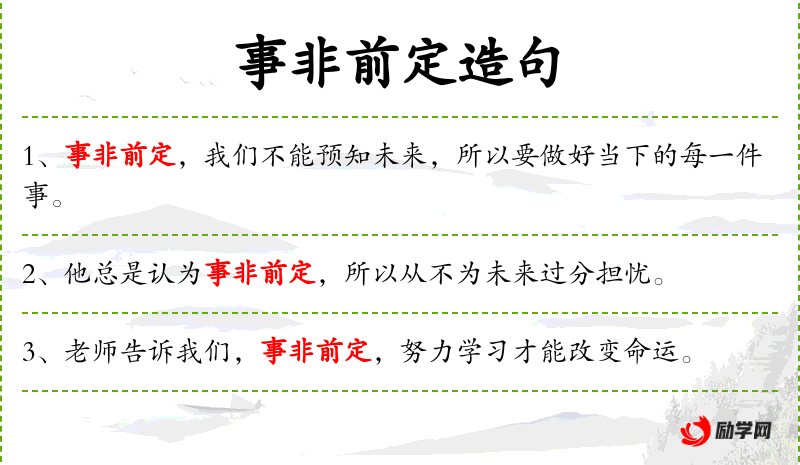- 事非前定:短语,表示事情并非事先决定好的。