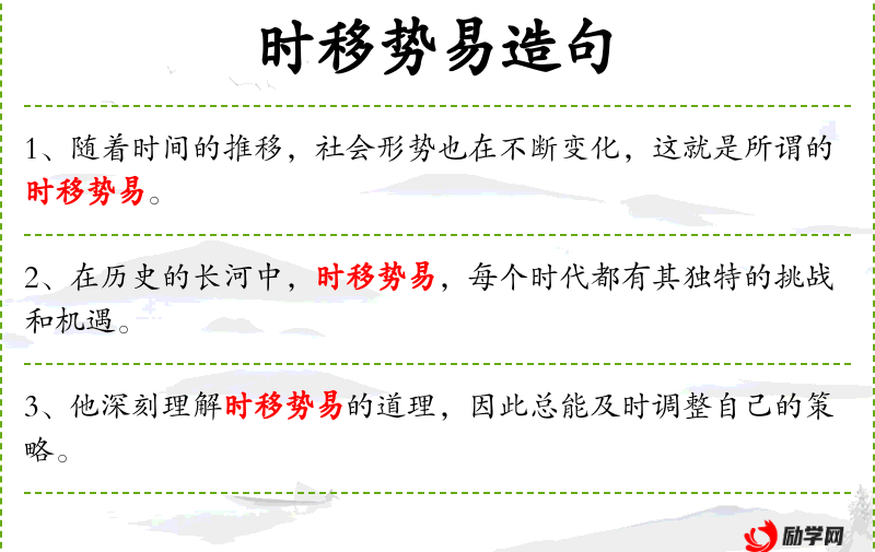 - 时移势易:这个成语源自**古代,强调随着时间的推移,情况会发生变化。