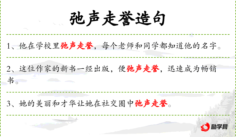 “弛声走誉”是一个汉语成语,源自古代文学,用于形容声誉迅速传播。这个成语的使用体现了汉语文化的特色。