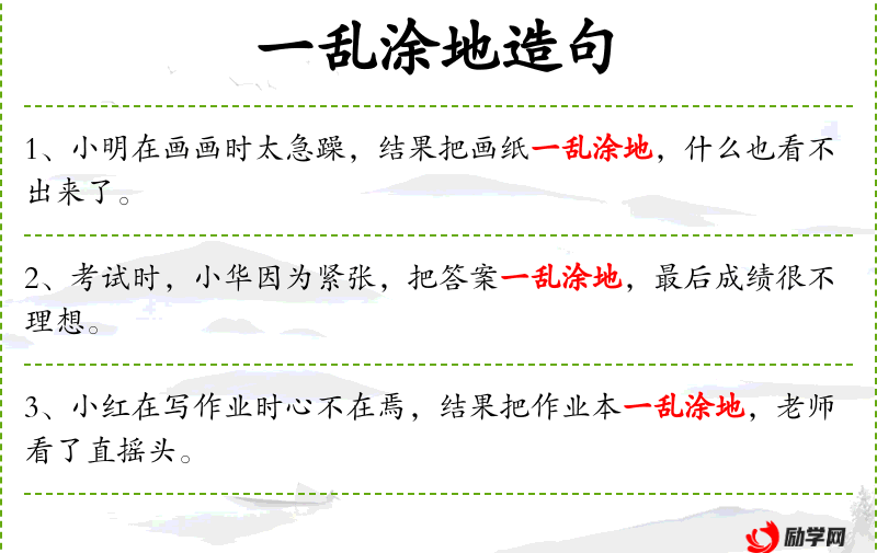 1. 【一乱涂地】 - 形容乱到不可收拾。