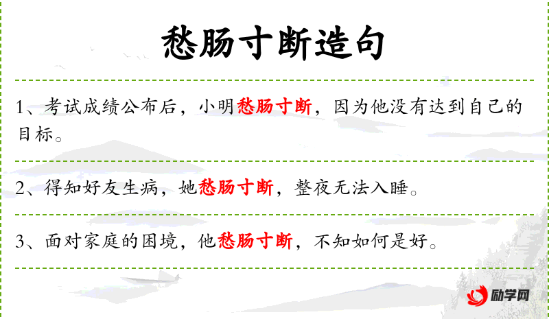 - 愁肠寸断:这个成语源自**传统文化,形象地描述了极度悲伤的情感。