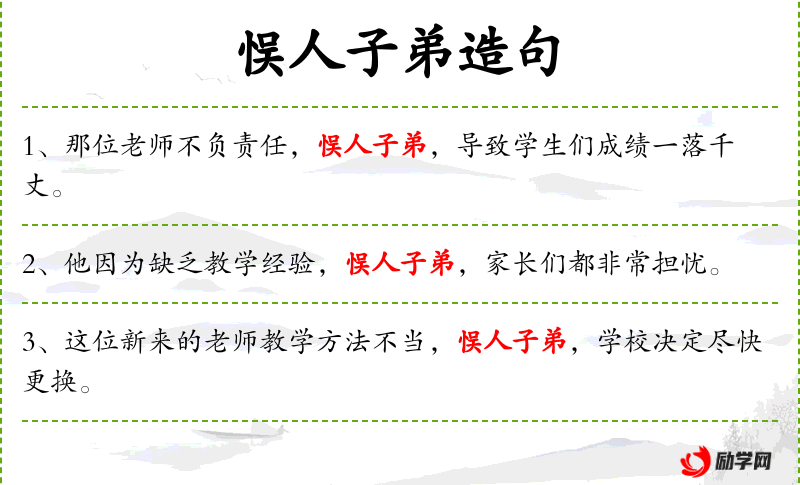 - 误人子弟:指教师的教育方法或行为对学生产生了负面影响。
