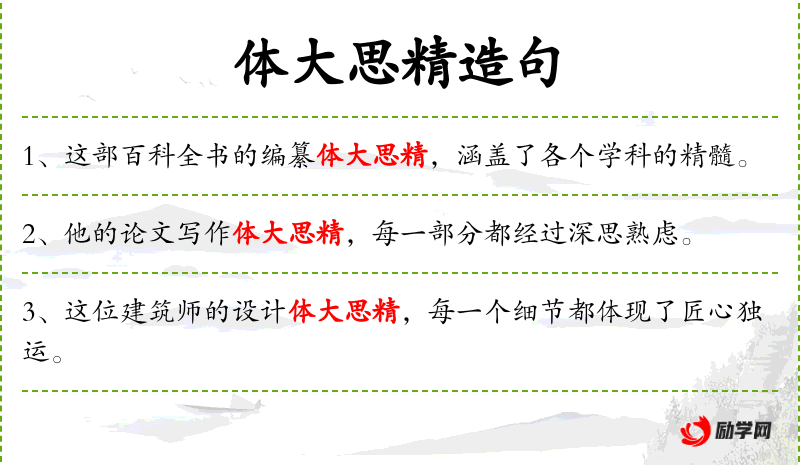 - 定语:“体大思精”、“每一笔”