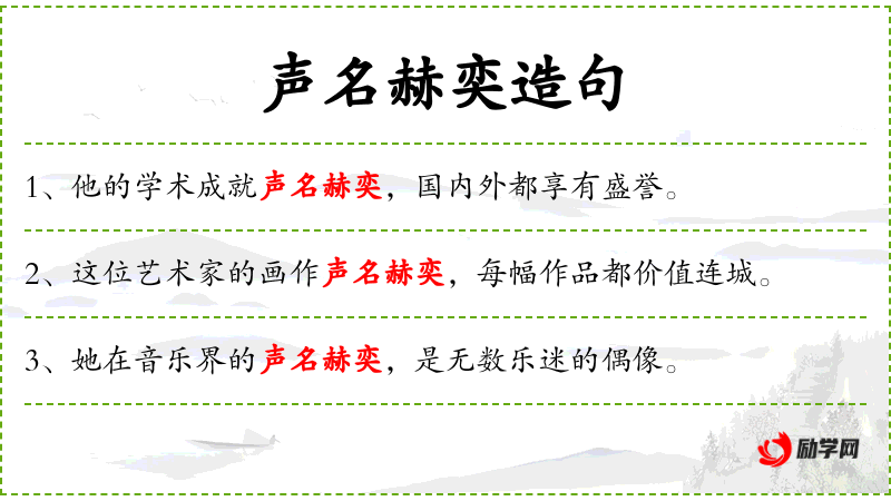 - 声名赫奕:名声显赫,非常著名。