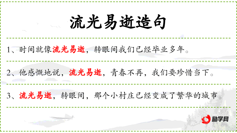 3. 【流光易逝】 - 形容时间过得极快。