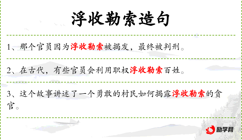3. 【浮收勒索】 - 用强迫手段额外征收。同“浮收勒折”。
