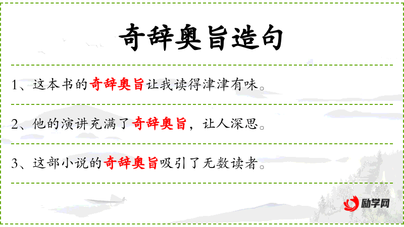 - 奇辞奥旨:深奥难懂、玄妙、高深莫测。