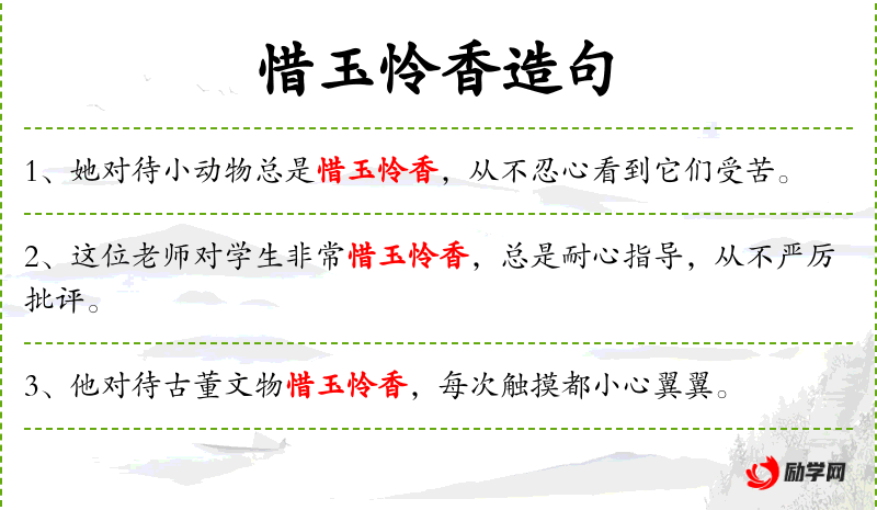 - 惜玉怜香:形容对美好事物的珍爱和怜悯。