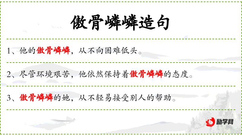 句子:“尽管环境艰苦,他依然保持着傲骨嶙嶙的态度。”