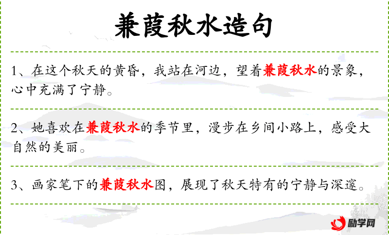 - 兼葭秋水:成语,形容秋天的景色美丽。