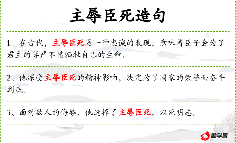 - 主辱臣死:成语,意为君主受辱,臣子应当以死相报。