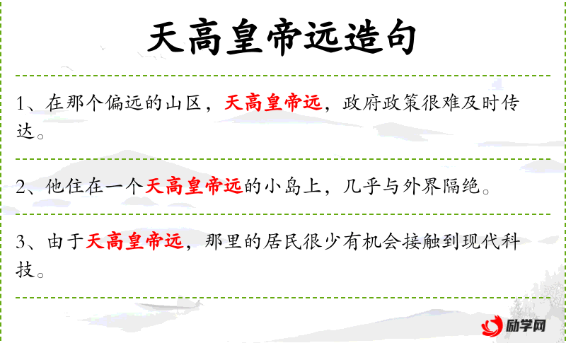 - 天高远**:这是一个成语,意思是地方偏远,中央政府难以直接管理。
