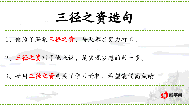 句子:“为了得到三径之资,他不得不向亲戚朋友借钱。”