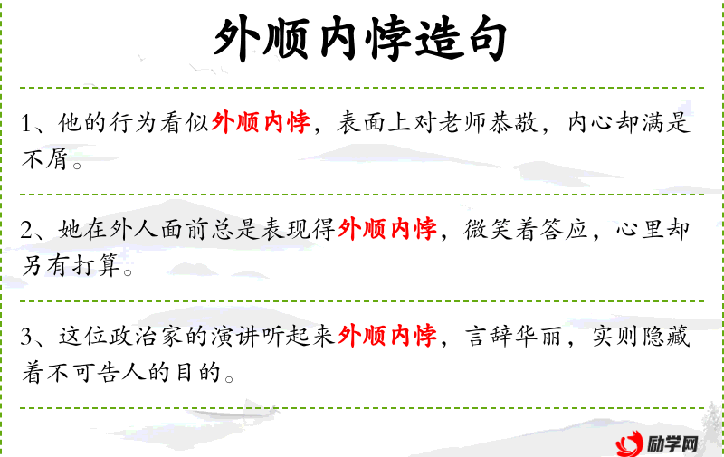 - 外顺内悖:表面上顺从,内心却相反。