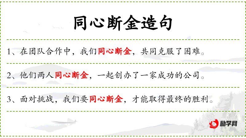 - 同心断金:源自**古代成语,原意是指同心协力可以切断金属,比喻团结一致的力量无比强大。