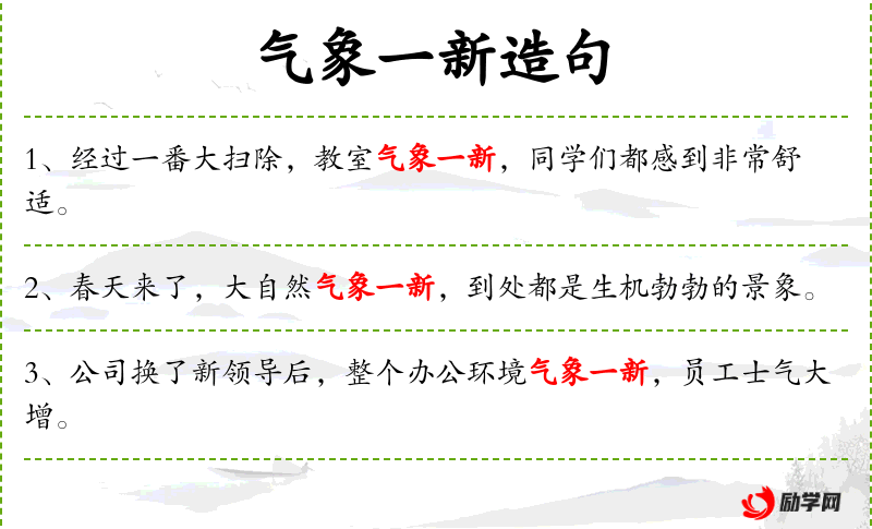 5. 【气象一新】 - 形容出现崭新的面貌,显得很光彩。