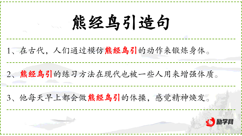 古代一种导引养生之法。状如熊之攀枝,鸟之伸脚。同“熊经鸟申”。