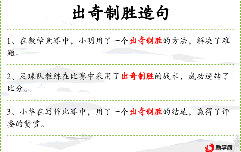 - 出奇制胜:用意想不到的方法取得胜利或效果。