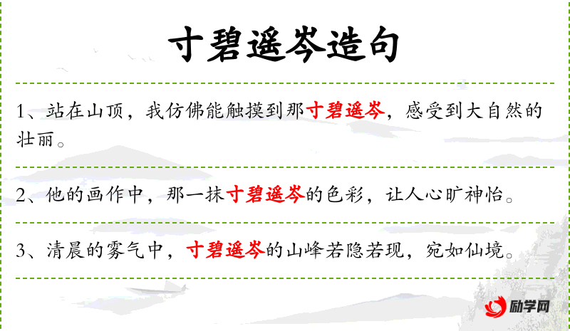- 寸碧遥岑:这是一个富有诗意的表达,可能指的是一种远山的碧绿色彩,给人以遥远、宁静的感觉。