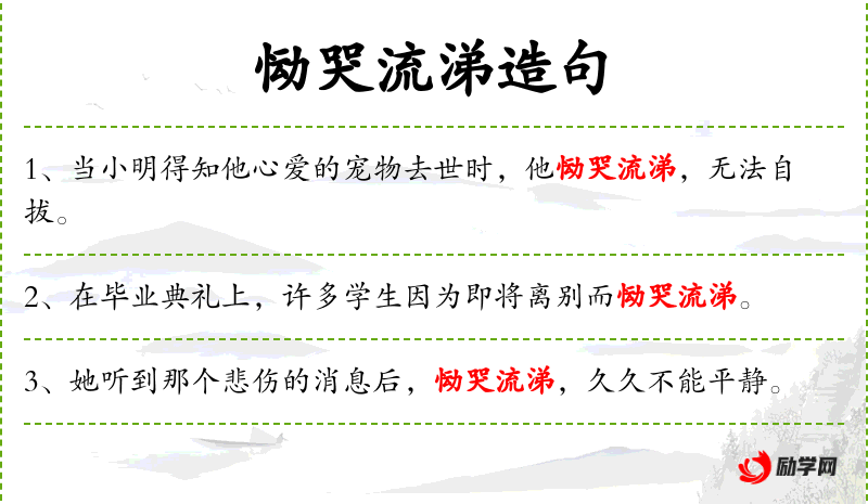 - 恸哭流涕:形容非常悲伤地哭泣。