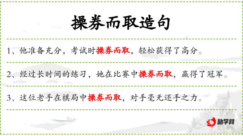 - 操券而取:成语,比喻做事得心应手,轻而易举。