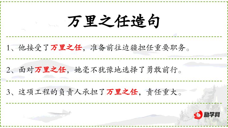 1. 【万里之任】 - 指到很远的地方任职。多指藩臣之任。