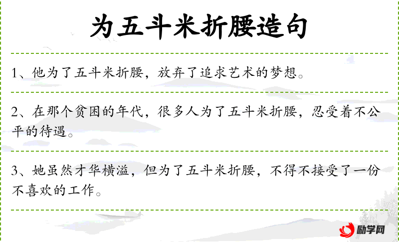 - 五斗米折腰:比喻为了生计而不得不屈服或妥协。