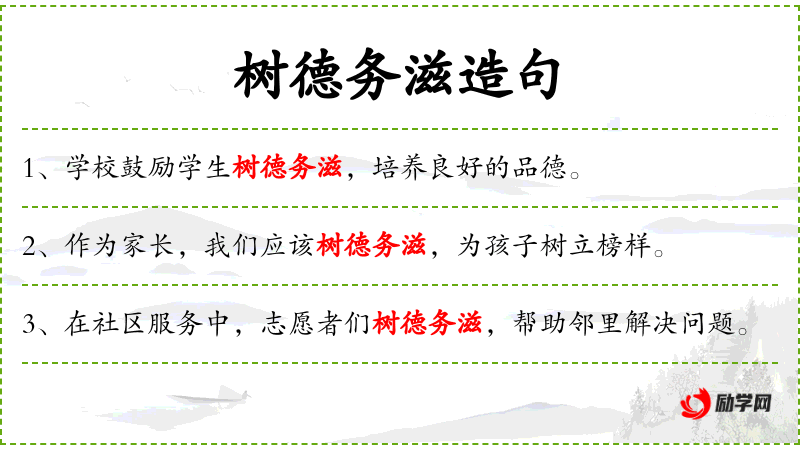 4. 【树德务滋】 树:立;德:德惠;务:必须;滋:增益,加多。向百姓施行德惠,务须力求普遍。