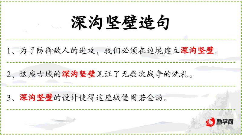 3. 【深沟坚壁】 - 《后汉书·南匈奴列传》:“宜令续深沟高壁,以恩信招降,宣示购赏,明其期约。”