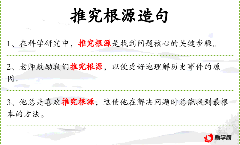 - 相关成语:“探本溯源”(探究事物的根本来源)、“寻根究底”(深入探究事物的根源)。