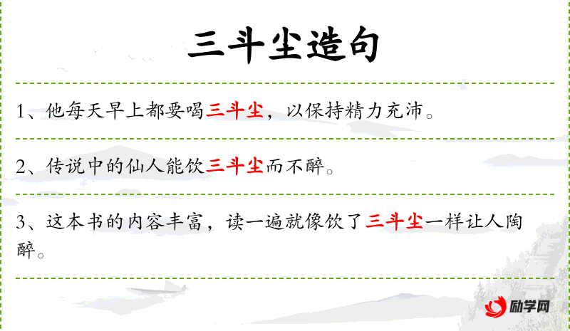 1. 【三斗尘】 - 指令人难食之物。三斗,极言其多; 比喻抑郁之气。