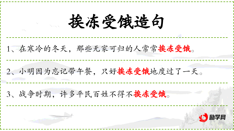 1. 【挨冻受饿】 指无衣无食的穷困境况。