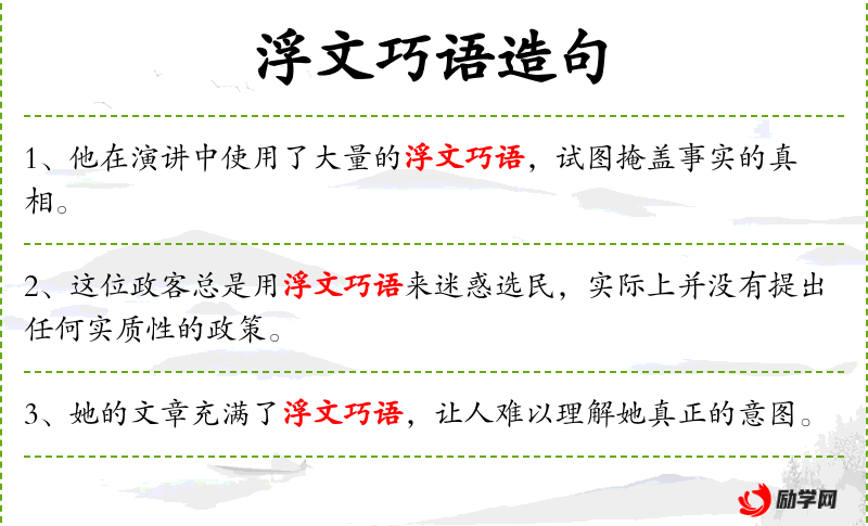 2. 【浮文巧语】 - 华丽而空泛的言词。