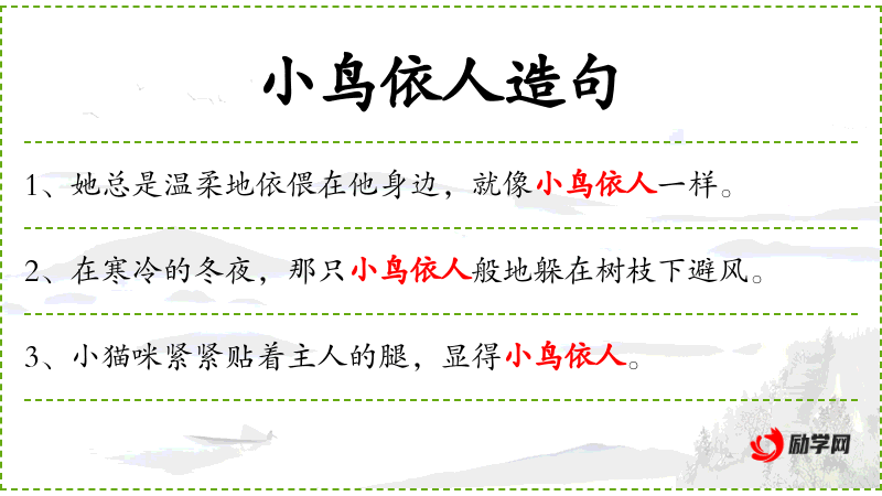 - 依人般地:副词短语,形容**的行为像依偎在人身边一样。