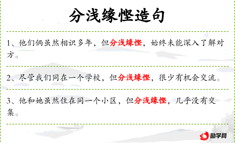 - 分浅缘悭:成语,意为缘分浅*,难以深入交往。