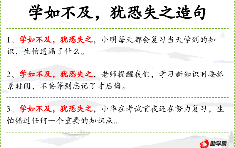 句子:“学如不及,犹恐失之,小明每天都会复*当天学到的知识,生怕遗漏了什么。”
