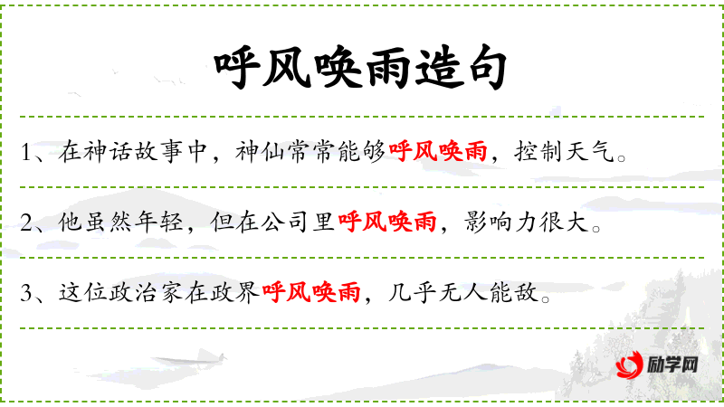 - 成语典故:成语“呼风唤雨”源自古代神话,形容有非凡的能力或影响力。